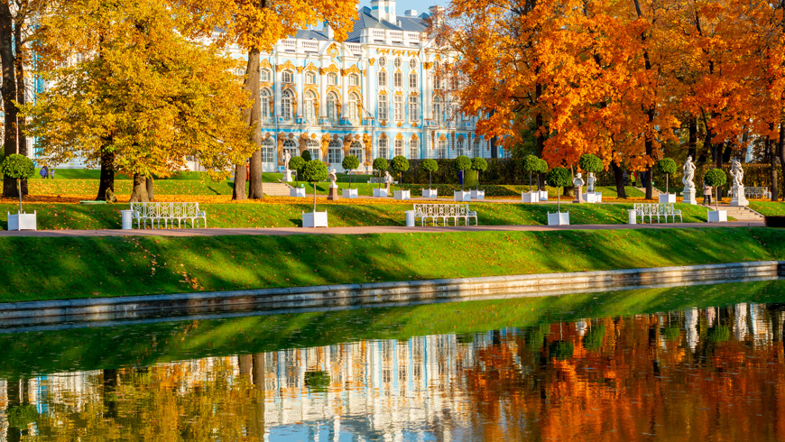 Царское Село Уникальная возможность застать два знаменитых загородных дворца без очередей и ожидания: Екатерининский дворец Царского села и Большой Петергофский дворец. Воспетое великим поэтом Александром Пушкиным Царское Село поражает своей красотой и историческим наследием. Здесь вы сможете увидеть знаменитую Янтарную комнату — шедевр искусства, переживший бури революции и Второй мировой войны. Прогулка по тенистым аллеям парка и залам Екатерининского дворца позволит вам окунуться в атмосферу блестящей роскоши царской эпохи, почувствовать элегантное величие Екатерины Великой и домашний уют Николая II. Петергоф Далее, на комфортабельном автобусе, мы отправимся в Петергоф — русский Версаль. Вас ожидает знакомство с прекрасным парком, раскинувшимся на берегу Финского залива, с великолепными дворцами. После осмотра Нижнего парка у вас также будет свободное время для прогулки к Финскому заливу или посещения одного из кафе. Рекомендуем посетить Большой Петергофский дворец и послушать его историю от гида дворца, который проведетвам увлекательную экскурсию по его залам Обратите вниманиеВходные билеты не включены в стоимость экскурсии. Накануне поездки мы направим вам ссылки на официальные сайты резиденций, где вы сможете приобрести билеты. Стоимость билетов: ОБРАТИТЕ ВНИМАНИЕ с 04.11 вход в Нижний парк становится бесплатным, фонтаны заканчивают свою работу • Екатерининский дворец с экскурсией + Екатерининский парк: взрослый — 1500 руб., льготный — 900 руб., дети от 7 до 14 лет — 400 руб., дети до 7 лет — бесплатно • Нижний парк Петергофа: взрослый — 750 руб., учащиеся от 14 до 18 лет — 550 руб., учащиеся от 7 до 14 лет — 100 руб., дети до 7 лет — бесплатно • Большой петергофский дворец: взрослый — 750 руб., учащиеся от 14 до 18 лет — 550 руб., учащиеся от 7 до 14 лет — 200 руб., дети до 7 лет — бесплатно