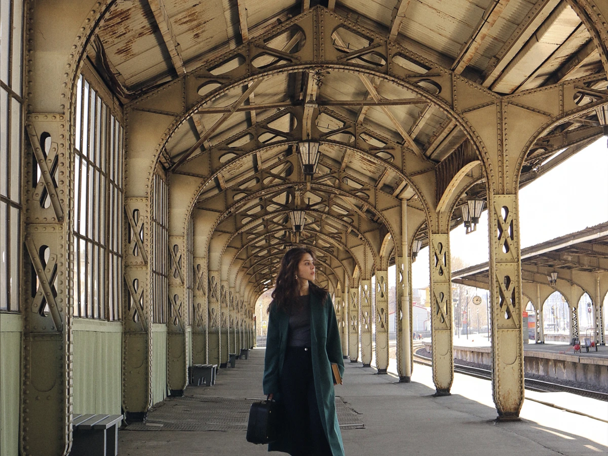 Фотосессия будет проходить в разных залах вокзала и на перроне. Я предоставлю вам реквизит: чемодан в ретро-стиле, плёночный фотоаппарат и книгу. По желанию вы можете взять с собой дополнительные атрибуты для съёмки, создающие настроение. Например, букет цветов, газету или французский багет.