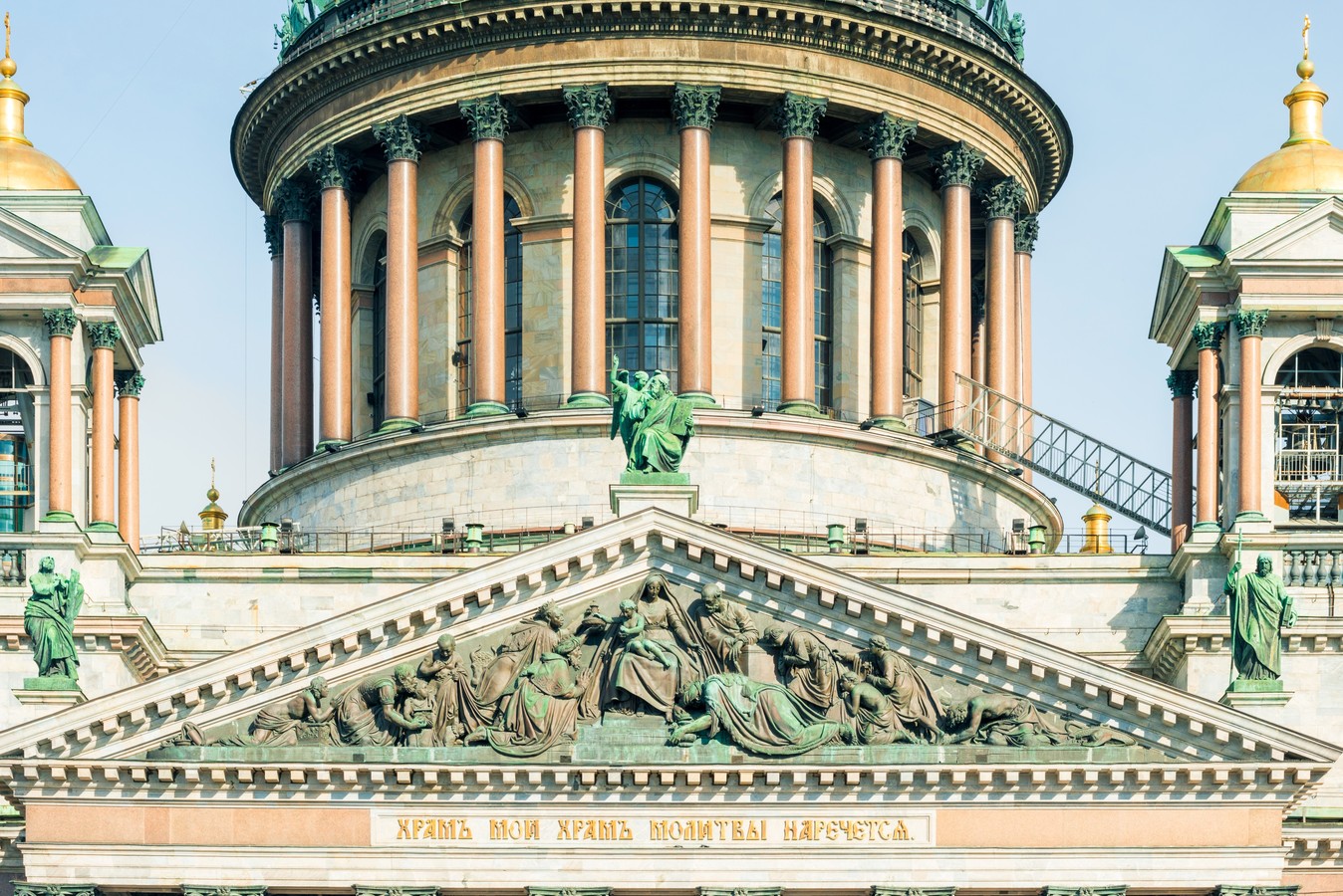 Исаакиевский собор внутри и виды с его колоннады (1,5 часа). В сопровождении местного гида вы подробно изучите роскошные интерьеры Исаакия. Здесь и позолота, и цветное стекло, и лазурит с малахитом; картины и мозаики известных художников, статуи и скульптурные группы. Конечно, вы услышите об авторе проекта, французе Огюсте Монферране, и проследите драматичный путь собора сквозь века. А затем мы предлагаем вам подняться на колоннаду и полюбоваться Санкт-Петербургом на 360 градусов с высоты 43 метра.