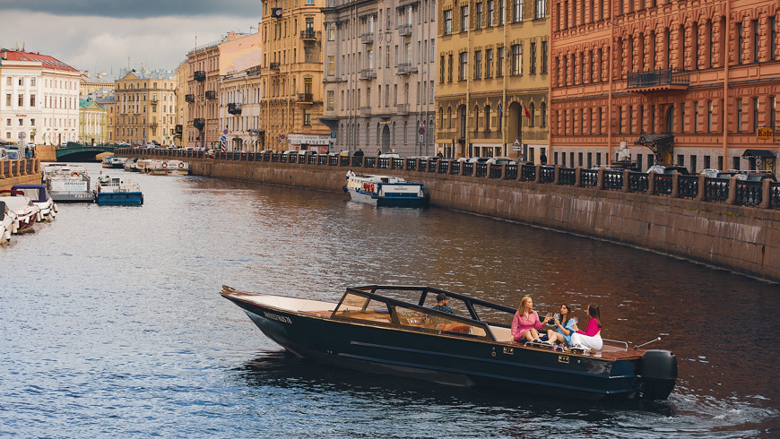 Прогулка по рекам и каналам — это must-see в Петербурге. Вариантов, как покататься по знаменитой Фонтанке или Неве так много, что, кажется, сложно придумать что-то новое. Но мы попробовали и создали Блюберри — прогулочный катер от команды Nevatrip. Здесь ничего лишнего, только реки и каналы, стол с легкими закусками, шум Невы и смех близких людей. При этом адаптировать прогулку можно как угодно: от экскурсии и первого знакомства с городом до самого питерского дня рождения в кругу самых близких. А значит всего пара кликов — и ваше уникальное впечатление путешествие в Питере уже забронировано. В чем особенность прогулки? • Современный катер Blueberry комфорт-класса с 3 зонами отдыха. • Моментальная бронь катера без связи с менеджером на любое количество часов. • Классические маршруты по центру Петербурга, Финскому заливу или под развод мостов. • Возможность принести свою еду и алкоголь на борт. • Возможность взять с собой животных и маленьких детей. • Обогреватель и тент для комфорта в любую погоду. • Гибкое расписание: ежедневно с 11:00 до 03:00. Маршрут катания Прогулка стартует от набережной реки Фонтанки, 64. Маршрут зависит от выбранной длительности: • До 2 часов — прогулка по центральным рекам и каналам с выходом в Неву. Вы увидите Исаакиевский собор, Зимнюю канавку, Эрмитаж, Дворцовый мост, Адмиралтейство, Медный всадник, Стрелку Васильевского острова и Петропавловскую крепость. • От 2 до 3 часов — прогулка по центральным рекам и выход в Финский залив. • От 3 часов — прогулка по любым водным артериям города с возможностью отправиться в пригороды: Петергоф, Кронштадт, Стрельна. • От 2 часов 15 минут — ночная прогулка с наблюдением разводки главных мостов города.