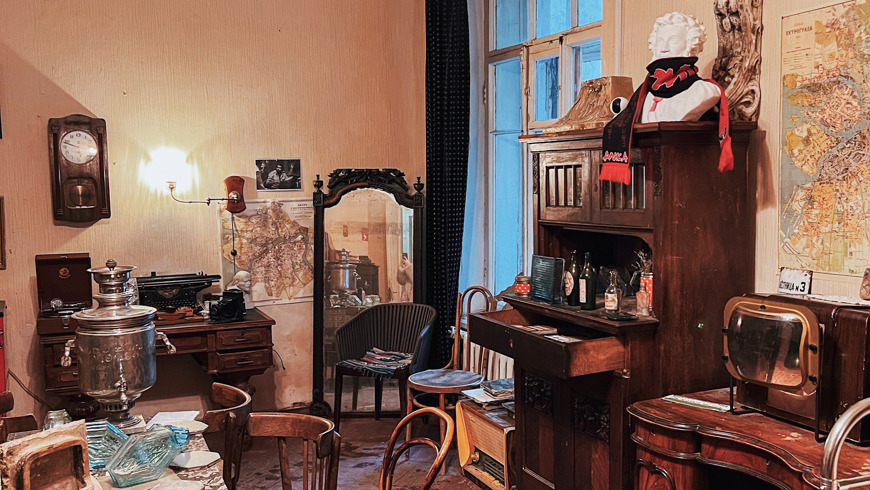 Теперь в историческую квартиру Довлатова можно попасть! На нашем маршруте мы посетим самые интересные парадные и дворы-колодцы в районе метро Владимирская, а также запечатлеем знаменитую желтую парадную «Ромашка» в доходном доме Елисеевых. Немного о самой квартире: Квартира, в которой жил Довлатов, оставалась коммунальной почти целое столетие. Здесь не проводили капитального ремонта, не меняли ни окон, ни дверей, что позволило сохранить множество подлинных вещей, связанных с писателем — включая его кровать и сундук, где он хранил памятные вещи. Эта историческая аутентичность придает месту особую энергетику. Исторические интерьеры квартиры — обои, мебель, дверные ручки и сами двери, помогут погрузиться в ту эпоху. Сегодняшние владельцы квартиры — увлеченные жизнью Довлатова петербуржцы, детально изучившие множество документов.