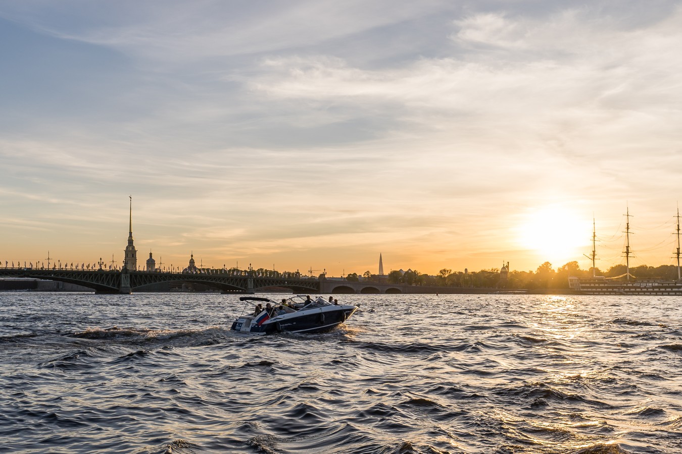 Совершите водную прогулку по одному из самых редких маршрутов города. Вы отправитесь в сторону центральной акватории Невы, затем по Малой Неве, Ждановке и Малой Невке дойдёте до Финского залива. Остановитесь, чтобы полюбоваться прекрасным закатом, насладиться петербургскими пейзажами и сделать атмосферные фото.