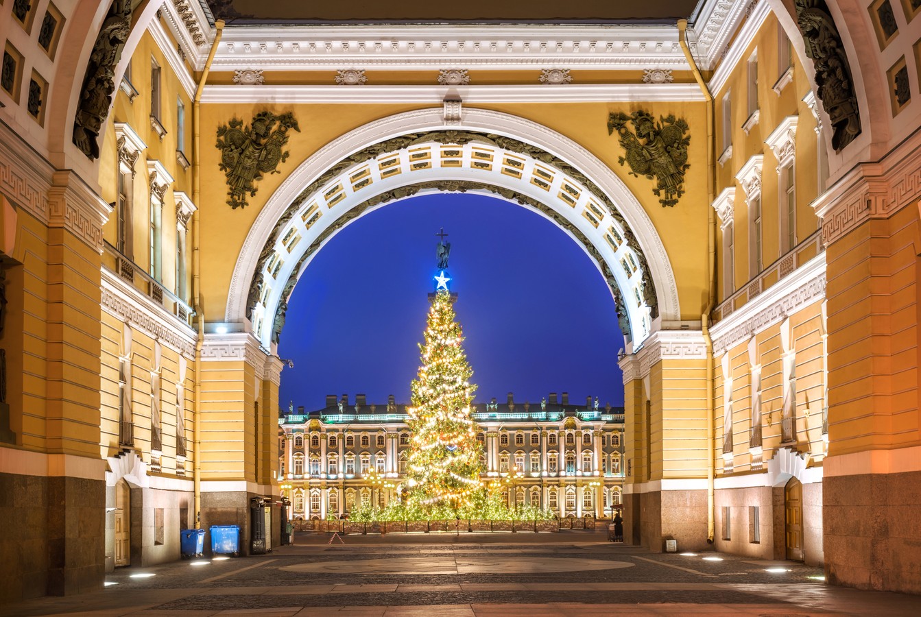 Вы зарядитесь праздничным настроением у главной ёлки города на Дворцовой площади.