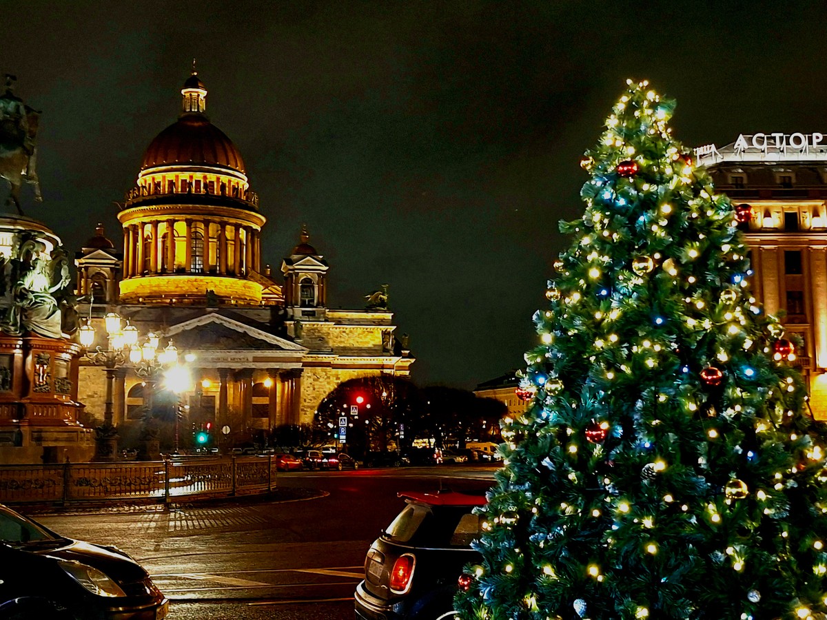 Исаакиевская площадь: Исаакиевский собор и Синий мост. Новогодняя инсталляция на мосту — идеальное место для новогодних фотографий.