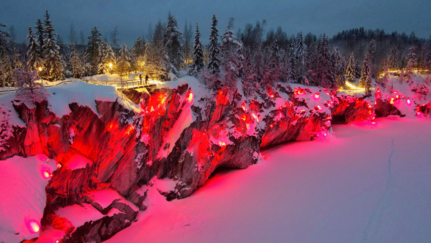 ТОП-5 мест Карелии: Рускеала, хаски-питомник, зоопарк, Долина Водопадов, Сортавала. Новогодний банкет в отеле — ваш номер рядом! Интерактив с Дедом Морозом Джухани, игры для всех и письмо на Северный полюс.