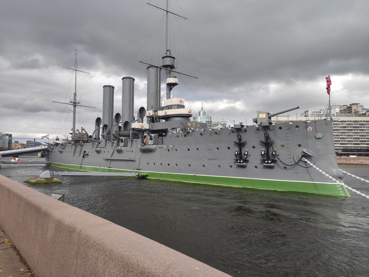 С Петроградской набережной вы ступите на борт корабля, который считается символом Октябрьской революции. По данным советских источников, именно из орудия «Авроры» революционер Е. Огнев произвёл холостой выстрел по Зимнему дворцу. У вас будет полчаса для самостоятельного осмотра корабля.