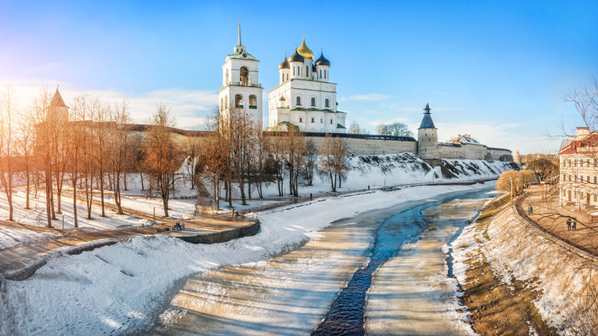 • Мы отправимся на комфортабельном экскурсионном автобусе. Первая остановка — Псков. Здесь мы увидим Псковский кремль — один из 10 символов России и Троицкий собор.