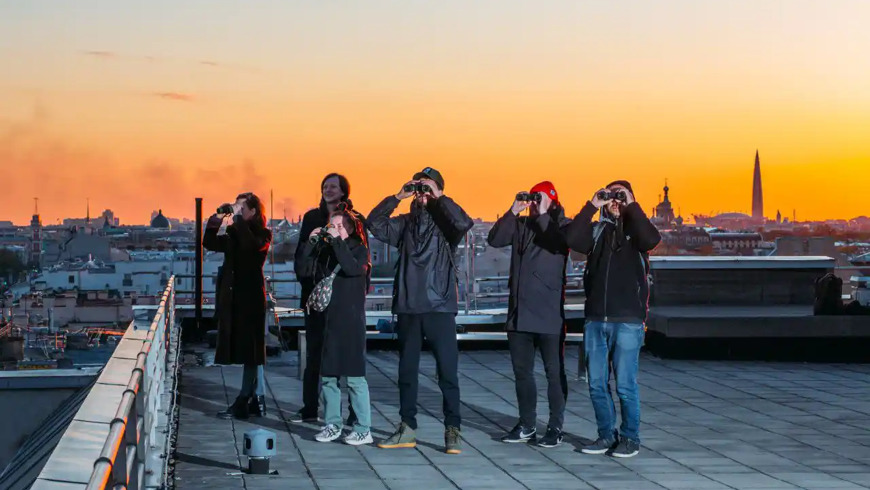 Если вы видели Санкт-Петербург со всех сторон, прошли десятки улиц и заглянули во все музеи, то откройте для себя новый ракурс. Посмотрите на город с высотной крыши, где видно: Исаакиевский собор, Зимний дворец, Казанский собор, шпиль Адмиралтейства и многое другое. Смотровая площадка оборудована специальным проходом и ограждениями. Безопасность подтверждена МЧС и правительством города.