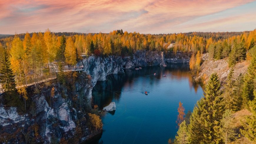 Самая дальняя точка нашего маршрута — жемчужина Северного Приладожья — горный парк Рускеала. Нас ждут озера с чистейшей изумрудной водой, карьеры, в которых когда-то добывали мрамор, украшающий сегодня фасады петербургских дворцов и соборов, и даже подземная штольня. У вас будет свободное время, чтобы насладиться прогулкой по парку, перекусить или опробовать активный отдых (тарзанку, зиплайн, катание на лодке, прогулка по подвесному мостику).