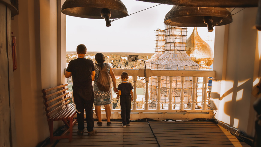 Иммерсивная экскурсия на колокольню, где вы вблизи увидите и почувствуете мощь больших колоколов, узнаете историю звонарного искусства, услышите одновременный звон более 20 колоколов и насладитесь видом на Сергиев Посад с высоты смотровой площадки.