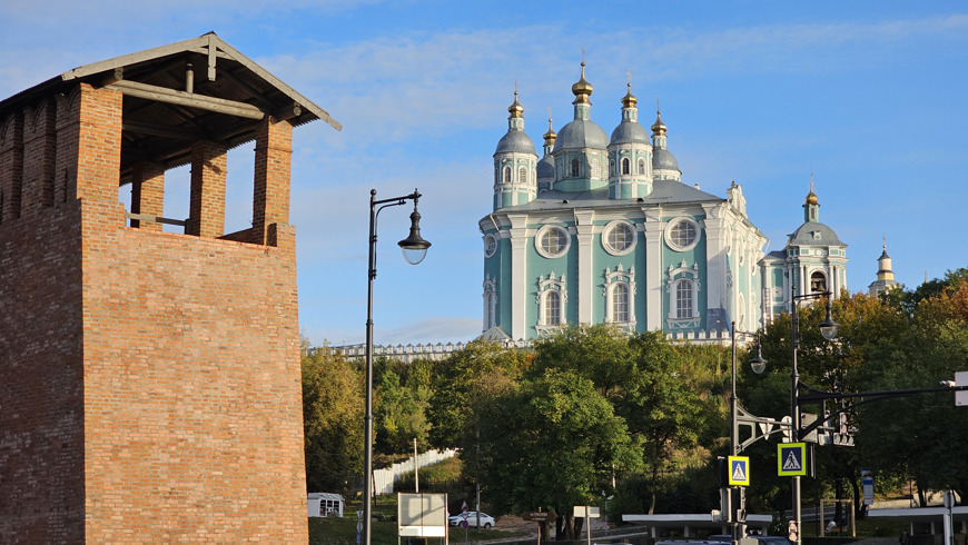 Не менее интересен и остальной архитектурный ансамбль Соборного холма. Это самое сакральное место нашего города, поражающее своей красотой и уникальной историей. Здесь вы увидите храмы на Соборном дворе, возведенные в XVIII–XIX веках, здание Архиерейских палат, Соборную колокольню и памятник Владимиру Мономаху. Также мы побываем на смотровых площадках, полюбуемся на знаменитые башни Смоленской крепости Орёл и Веселуха, осмотрим церкви Заднепровья.