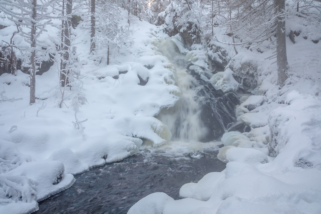 - Долина водопадов. На реке Иййоки есть четыре небольших, но очень фотогеничных водопада. И, конечно, лес с огромными елями вокруг