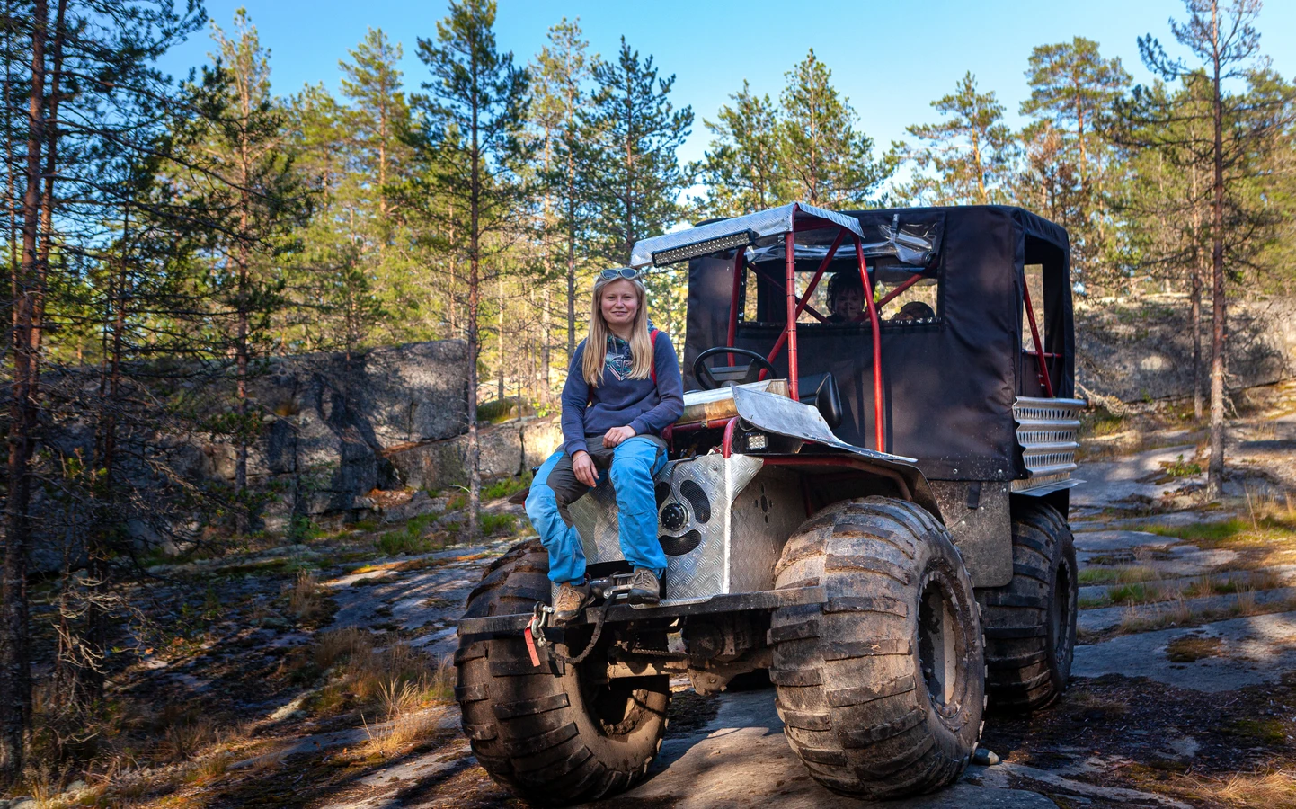 По Карелии — на вездеходе! Наше приключение пройдёт на безопасном транспорте с потрясающей проходимостью: каракат, что-то среднее между джипом и квадроциклом, специально спроектирован для езды по сверхсложным рельефам.