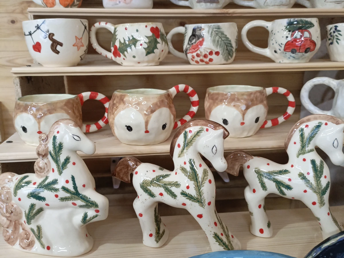 - В нашей мастерской все изделия ручной работы — одинаковых нет. Вы рассмотрите их и выберете чашку или тарелку, которую будете расписывать в подглазурной технике