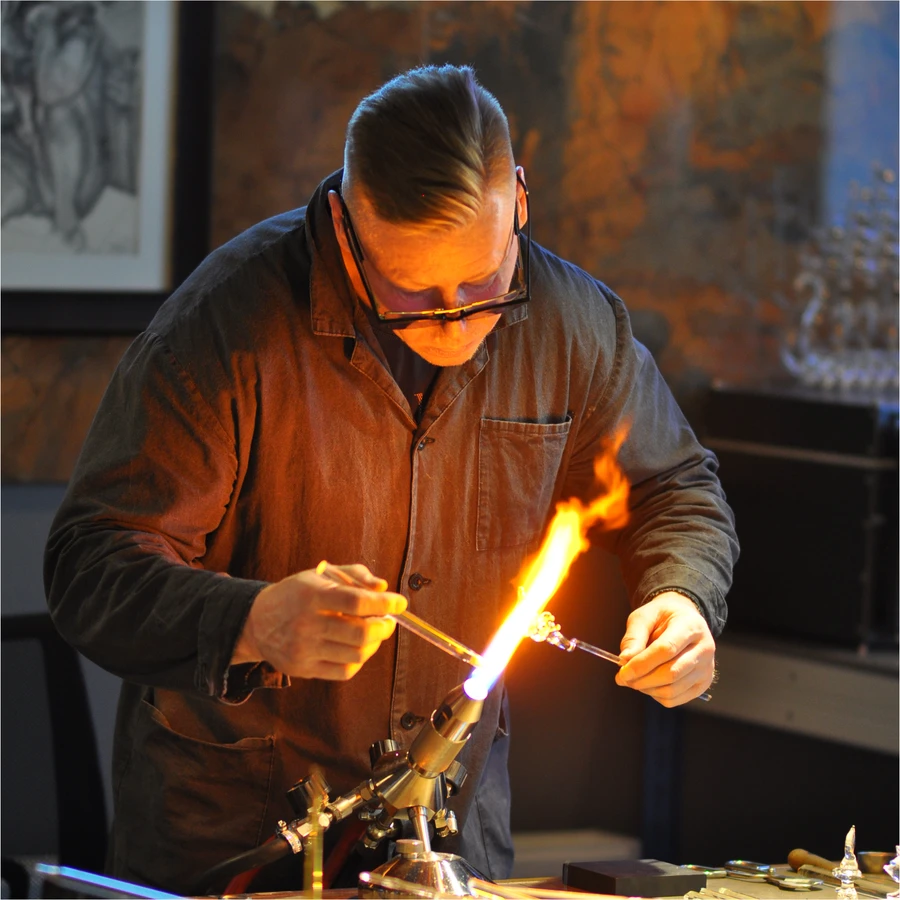 Наблюдение за работой мастера. На глазах участников мастер изготовит из стеклянной трубки сувенир в технике свободного выдувания. Так, в увлекательном формате дети познакомятся с пластическими свойствами стекла.