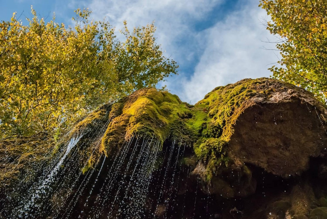 - На обратном пути домой мы заедем полюбоваться к Абзановскому водопаду. Зимой он представляет собой роскошную ледяную стену, сложенную из потоков воды. Ледяные струи имеют самые разные цвета, начиная от белоснежного и заканчивая изумрудным.