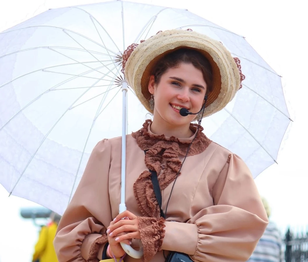 А ещё Софья предложит вам примерить её шляпку и прикрыться белым зонтиком — и сделает ваше фото с этом образе.
