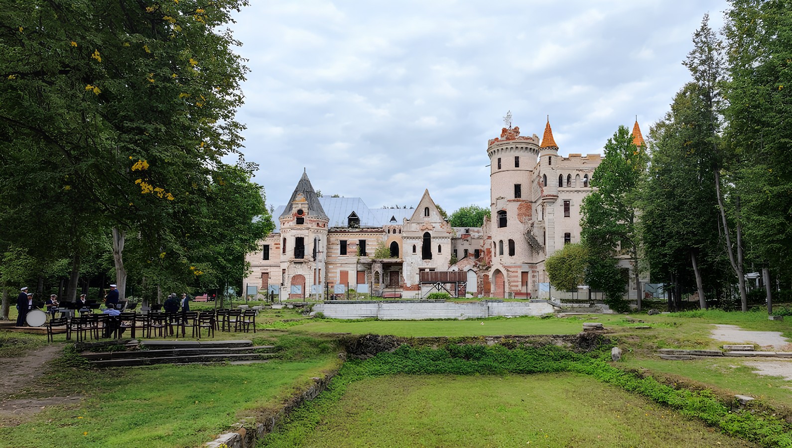 Необычный замок построен в конце 19 века. Его башни и стены напоминают европейские крепости.