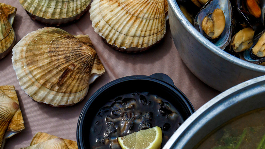 Устали, пора подкрепиться? Для вас будет организован горячий обед с только что выловленными живыми морепродуктами: морские ежи, гребешок, мидии, устрицы. Дополнит все бокал вина.