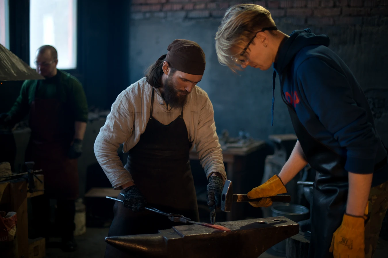 Со мной работает команда мастеров — людей, для которых кузнечное дело стало частью жизни. Мы любим своё ремесло и умеем передавать его тем, кто приходит за впечатлениями и живым опытом.