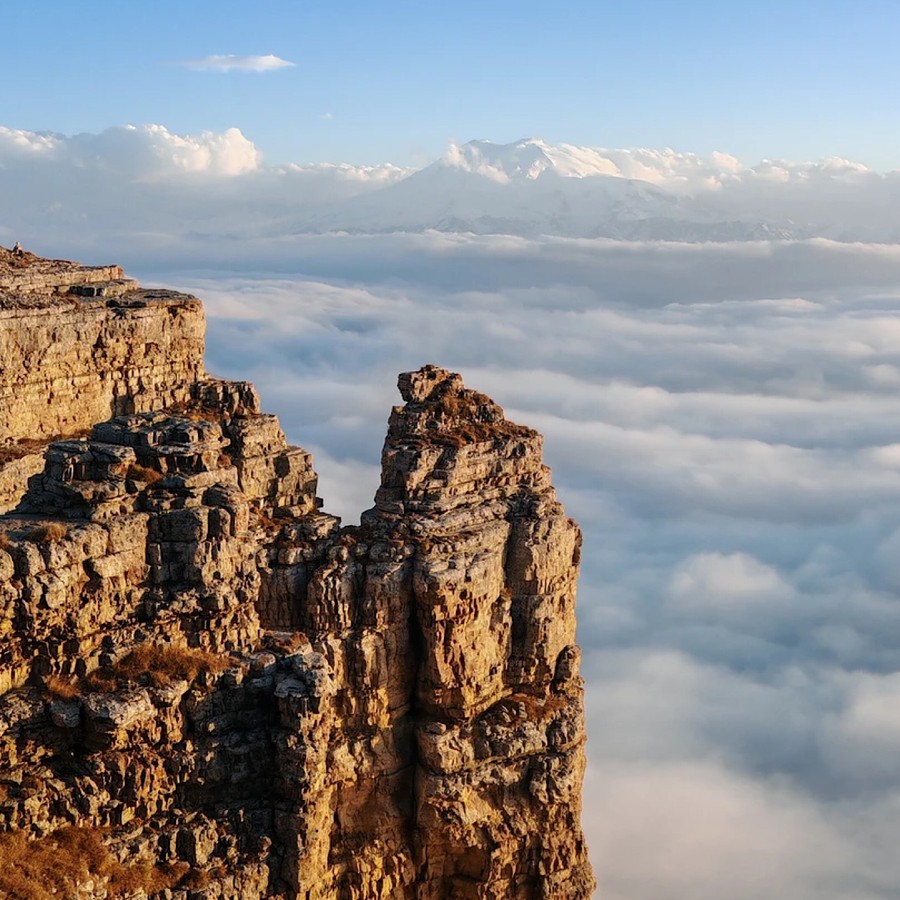 - И вот перед нами плато Бермамыт! Отсюда открывается один из лучших видов на Эльбрус и Кавказский хребет. Вы будете очарованы красотой гор, увидите древний амфитеатр и скалы «Два монаха», а также услышите историю и легенды этих мест