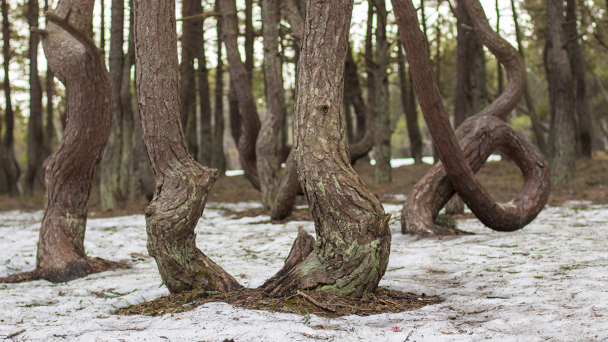 • Следуем дальше — чарующий и интригующий своей мистикой танцующий лес! Попробуем разгадать тайну этого загадочного места и рассмотрим самые интересные версии его возникновения именно в этом месте, в т. ч. мистические версии. Постараемся увидеть то, что не видно на первый взгляд и соотнести увиденное с аналогами во многих других частях Света;
