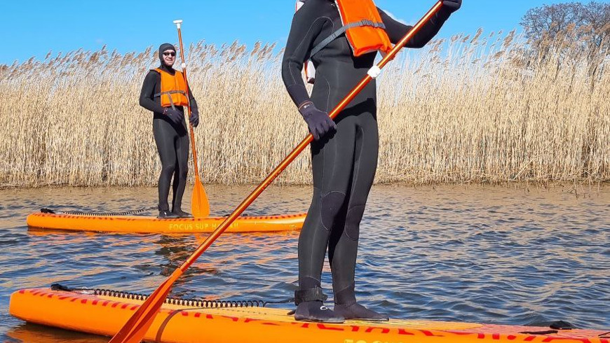 Вы отправитесь на реку Тростянку, откуда совершите морскую прогулку на SUP-сёрфах в гидрокостюмах и с необходимым снаряжением. Опытный инструктор будет сопровождать вас на маршруте: вы побываете в Куршском заливе, увидите мёртвый лес и птиц-бакланов.
