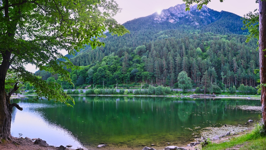 Увидим с Вами Озеро «Кара — Кёль». Это небольшое живописное озеро лежит в пределах охранной зоны Тебердинского заповедника. Название водоема на карачаевском языке означает «черное озеро». Темный цвет воде придает большой объем органических веществ. Считается, что природный водоем имеет возраст 8-10 тысяч лет и образовался после того, как из долины отступил мощный ледник. Максимальная глубина — 7 м, а в середине лета вода в нем прогревается до +20°С, поэтому озеро считается самым теплым.