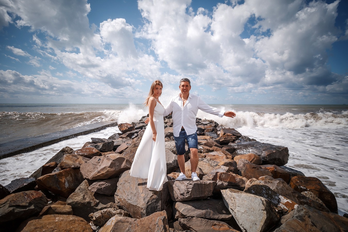 - Пастельные или нейтральные цвета отлично сочетаются с морским фоном и создают мягкий и романтичный вид