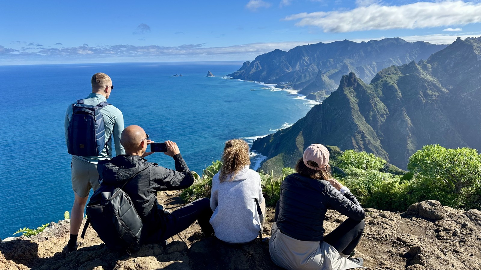 - Окажемся близко к береговой линии высоко в горах, откуда открывается потрясающий вид на северное побережье Тенерифе. Тут можно помедитировать или просто посидеть 30 минут, наслаждаясь просторами