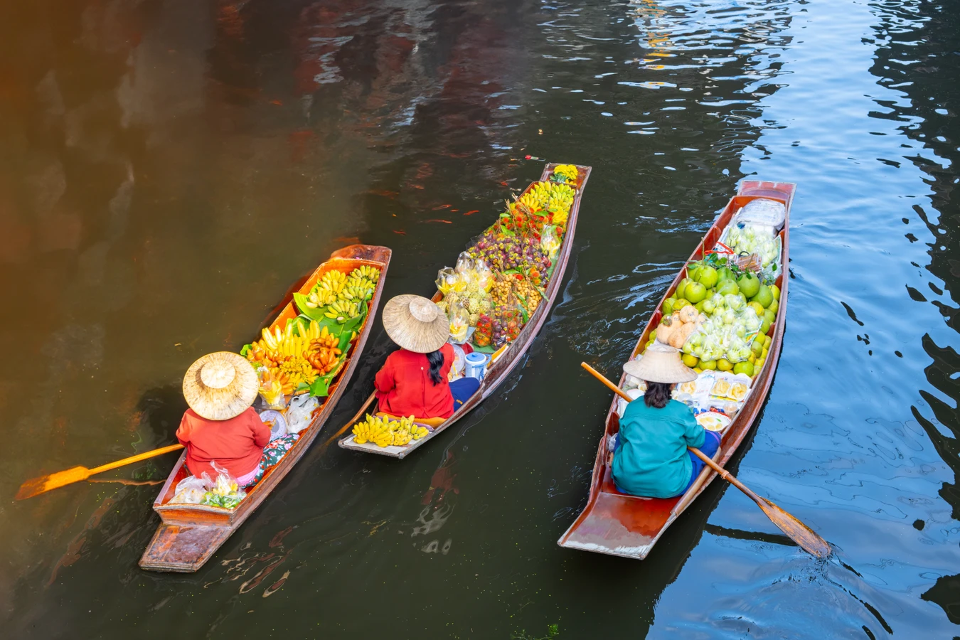 13:30–14:30 — путешествие на лодке по самому большому в Юго-Восточной Азии плавучему рынку Damnoen Saduak.