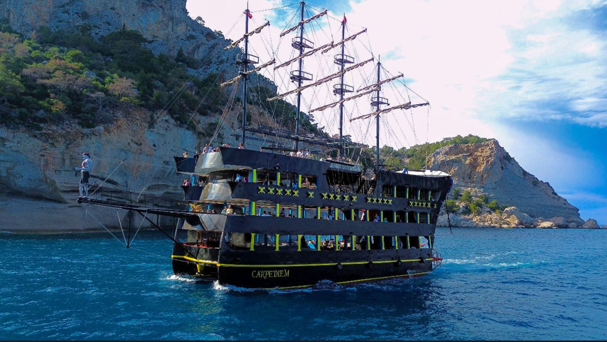 Приглашаем вас в захватывающее морское приключение на борту пиратской яхты! Поднимайтесь на борт и отправляйтесь навстречу солнцу, морю и веселью. Впереди — живописные пейзажи Средиземного побережья, остановки у бухты Клеопатры и древнего города Фазелис, зажигательная анимация, пенная вечеринка и вкусный обед. Почувствуйте себя пиратом на отдыхе — будет весело!