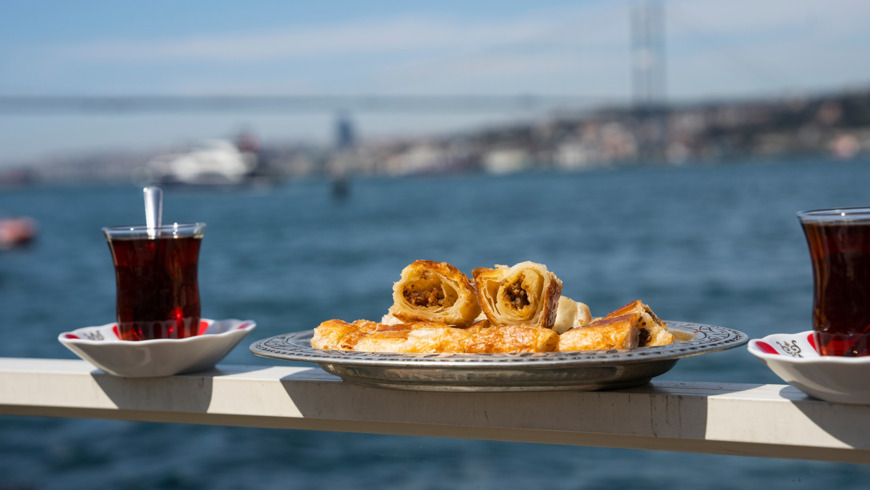 Начнется гастрономический тур по Стамбулу с традиционного завтрака с видом на Босфор. Местные сыры и оливки, пряный суджук, домашние джемы и ароматная выпечка — именно так начинается день самой обычной турецкой семьи.