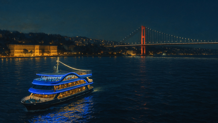 Добро пожаловать на вечерний круиз по Босфору — уникальное путешествие по самому сердцу Стамбула на роскошной яхте. Это идеальный способ завершить день, насладиться вкусным ужином и увидеть главные достопримечательности города в огнях ночи.