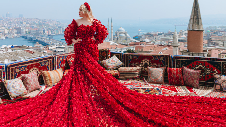 Три восхитительные локации для завораживающих кадров в Стамбуле: терраса, убранная восточными коврами, с видом на пролив, эффектная стена из роз с видом на главную мечеть города и — по желанию — качели над Босфором.