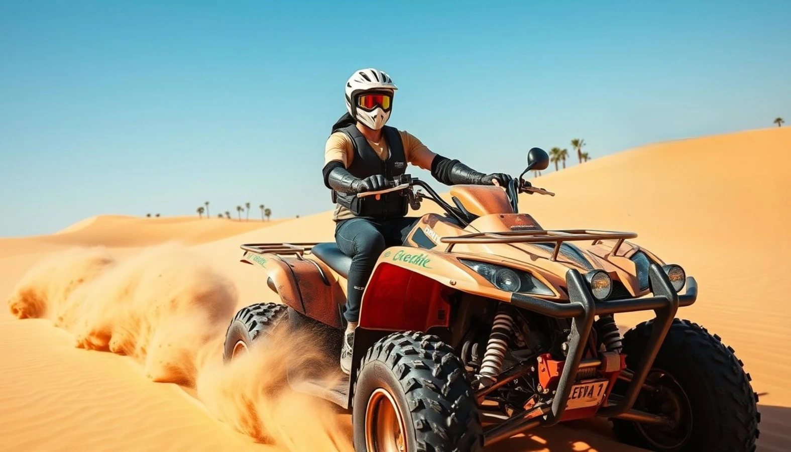 Это динамичная и яркая поездка по пустыне: вы сами управляете квадроциклом и мчитесь по красным дюнам Дубая, ощущая скорость, рельеф и простор. За 30 или 60 минут вы получите насыщенный опыт, который подходит как для любителей драйва, так и для тех, кто просто хочет почувствовать атмосферу пустыни.