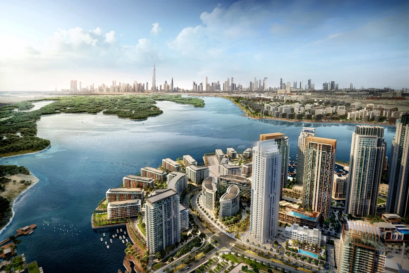 - Emaar Creek Harbour — новый центр притяжения, масштабный проект от создателей Бурдж-Халифы. Это целый город на берегу залива с уже сложившейся инфраструктурой, парками и видами на главный символ Дубая