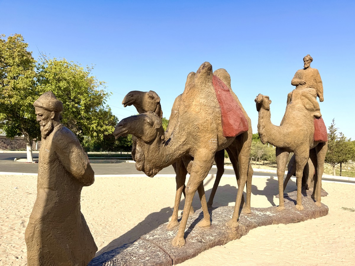- Пройдясь по караванной дороге, от которой пролегала одна из малых веток Шелкового пути, увидим мечеть Биби-Ханым, окутанной разными легендами и байками.
